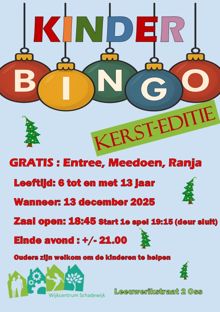 - Kerst kinder bingo 13 december 2025.Zaal open van 18.45 uur